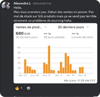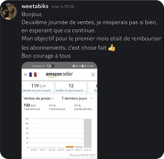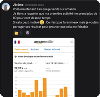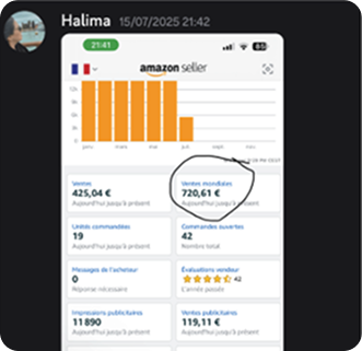 Tu peux choisir une méthode claire, un accompagnement humain et une communauté qui réussit. Un programme qui a déjà aidé des dizaines d’élèves à obtenir leurs premiers bénéfices concrets sur Amazon… et qui peut t’aider à faire pareil.