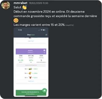 Et chaque mois, une session en live permet de faire le point sur un élément précis du business (recherche produits, recherche grossiste, développement de boutique…) Un replay sera disponible.