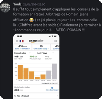 Depuis, j’ai formé plus de 1200 élèves à créer leur propre business rentable. Mais surtout : j’ai prouvé qu’on peut réussir sur Amazon en partant de zéro, à condition d’avoir une méthode claire et un vrai accompagnement humain.